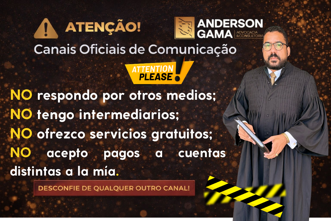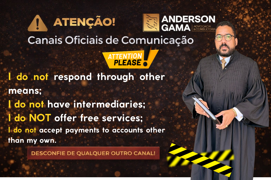 In order to ensure transparency, security, and the protection of clients, Anderson Gama Law & Consultancy hereby states, in a clear and unequivocal manner, that all professional communications are conducted exclusively through its official channels, duly identified on this website.